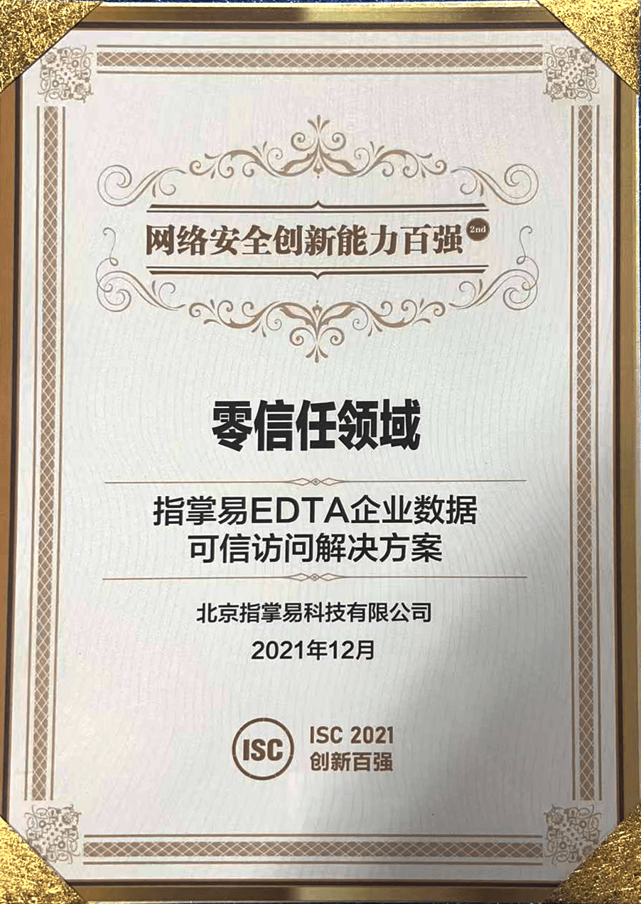 12月14日,ISC 2021网络安全创新能力百强(简称“创新百强”)正式发布,本次创新百强评选精准覆盖年度创新安全领域,以创新力为唯一标准,遴选出十大热点领域的创新百强企业。指掌易凭借在零信任安全领域突出的技术实力和优秀的市场表现,斩获零信任领域创新奖。据悉,本届评选由ISC平台发起,联合赛迪顾问、数世咨询、数说安全、安在、看雪等网络安全分析机构、垂直媒体,共同聚焦网络安全创新的核心能力,绘就网络安全行业的创新技术全景图谱。 经过专家评审团以及客户智库的双重评审,创新百强最终甄选出年度网络安全十大热点领域的创新产品。持续深耕零信任安全市场指掌易上榜《 2021网络安全创新能力百强》,佐证了公司多年来的自主研发的技术优势和长期以来的客户服务口碑,是安全行业专业机构对指掌易综合实力的又一高度认可。指掌易近年来一直在零信任领域进行深入研究,积极践行“零信任“安全理念,并围绕行业客户应用场景,推出EDTA企业数据可信访问解决方案,为企业在不可信的网络环境中构建新的安全边界。该方案目前已成功落地应用于多个行业头部客户,并获得良好口碑。现如今,指掌易凭借在零信任市场先进的技术方案和丰富的落地案例,成功入选《IDC 特殊研究:中国网络安全市场新趋势-零信任市场研究》、《IDC创新者:零信任之软件定义边界与微隔离技术》、《IDC PeerScape:CIO视角-中国零信任市场研究》等多项报告,零信任能力获得IDC高度认可。 指掌易科技 移动安全专家 指掌易专注于移动业务安全领域,为政府、军队、金融、运营商、能源、交通、教育、医疗、以及制造型和服务型企业等行业用户的办公和关键业务应用的移动化提供完整解决方案。安全赋能各行业用户开展移动业务,提高业务效率。