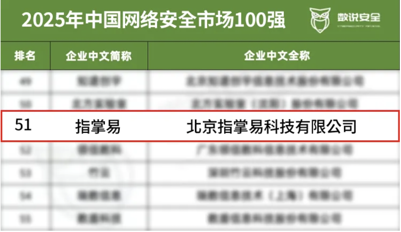 作为网络安全行业极具公信力的评选,百强榜单的调研与评选过程严谨且全面。据悉,自 2025年6月启动评选以来,调研范围聚焦国内注册、以网络安全为主营业务的企业,共对251家企业的综合实力进行排名评估。评选数据来源不仅参考企业提交的调研数据与公开信息,还融入赛博慧眼 CSRadar 商业分析平台的市场成交数据,再结合数说安全独创的网络安全市场与企业竞争力分析方法,经过多维度、深层次的分析评估后确定最终榜单。指掌易再度上榜百强榜单,不仅是行业专业机构对指掌易综合竞争力的高度认可,更印证了指掌易在愈发激烈的网络安全市场中,始终保持稳健向上的发展韧性与增长潜力。